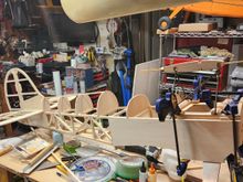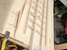 fin and rudder, outside is laminated balsa strips. bracing and hinge reinforcements will be added later. a lot lighter than solid sheeting on original.