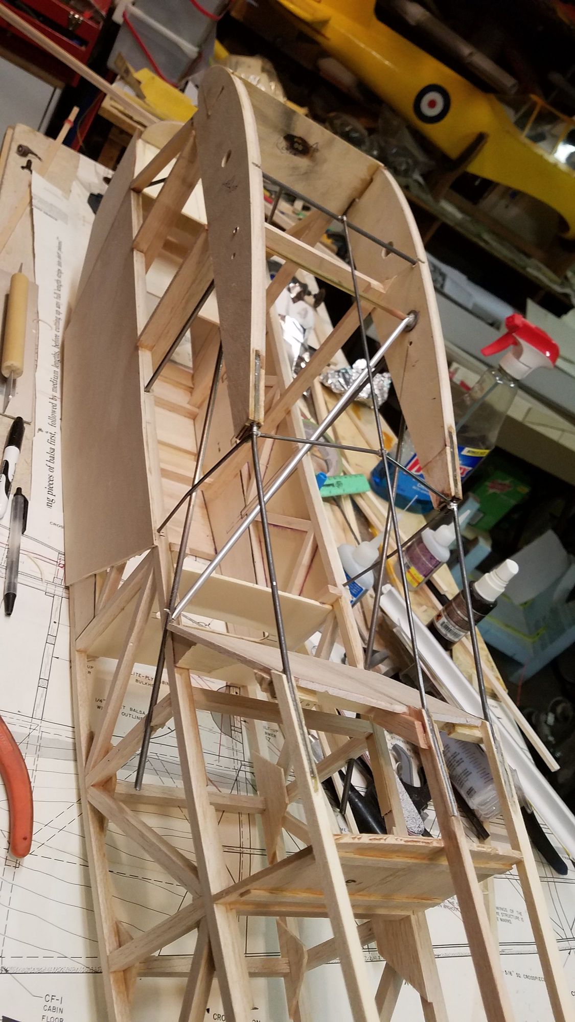 rear cabin framing, wires are epoxied and soldered in place. aluminum diagonal tube is cosmetic and will get glued in before windows are installed