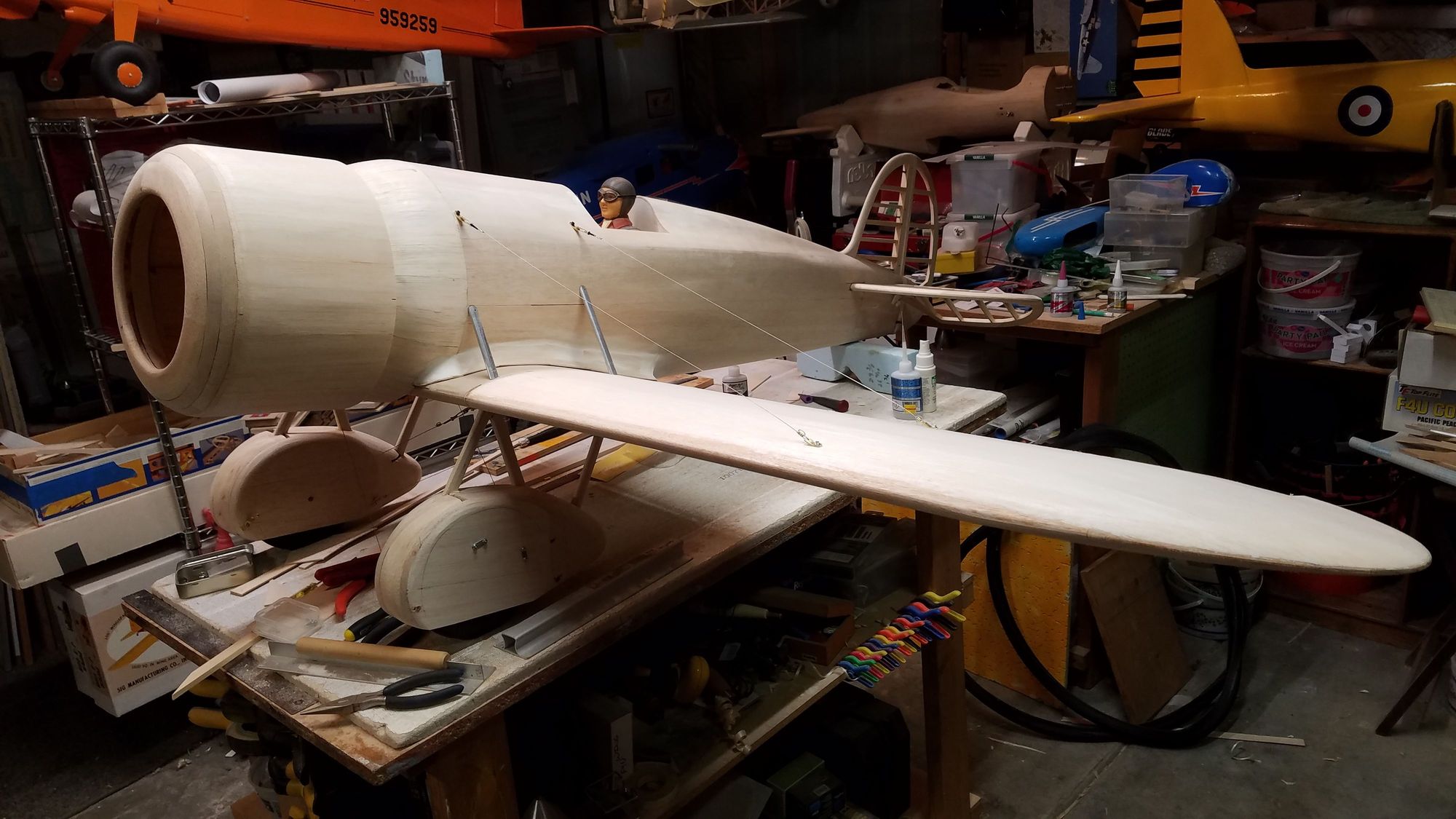 top of wing sheeted and aileron cut out, top flying wires installed